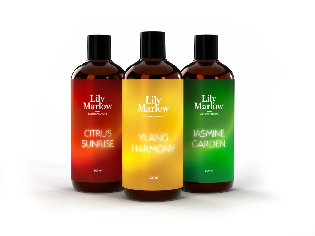 Bucură-te de varietatea aromelor Lily Marlow cu setul avantajos de parfumuri pentru rufe (3×500 ml) – YLANG HARMONY, JASMINE GARDEN și CITRUS SUNRISE.