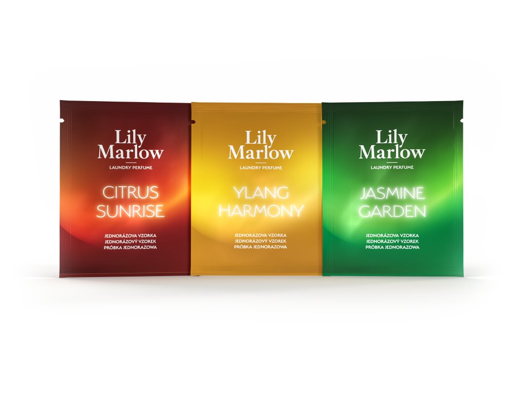 Descoperă universul aromelor Lily Marlow cu setul de trei mostre premium de parfumuri pentru rufe (3×6 ml).
